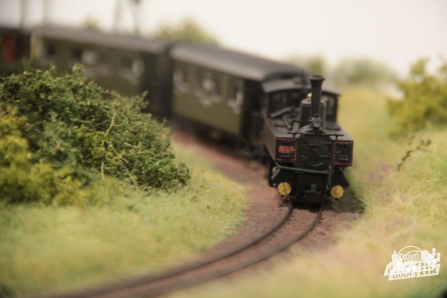 Czasowa makieta w skali H0e (ok. 20mb.), wąskotorowa, utrzymana w typowo polskim, starym klimacie, zachwycała starannością wykonanych detali i precyzją. Zobaczyliśmy m.in. piękne stare stacje, rowerzystów, bociany, rolników pracujący na roli, oczekujący na pociąg podróżnych, przydrożny stary sklep - niekwestionowane bogactwo makiety.