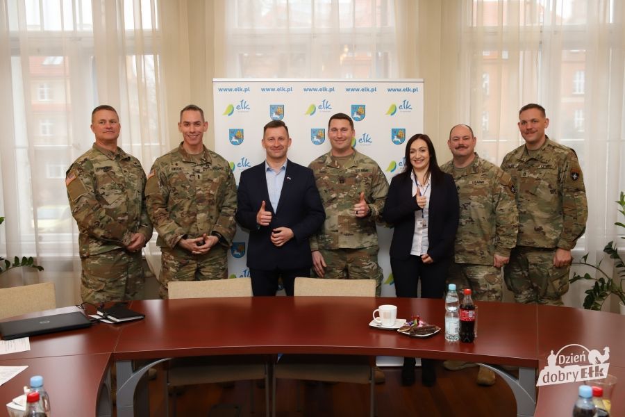 Przedstawiciele armii amerykańskiej stacjonującej w jednostce wojskowej w Ośrodku Szkolenia Poligonowego Wojska Lądowych w Orzyszu byli dzisiaj gośćmi prezydenta Ełku. Kolejny kontyngent stacjonuje od grudnia 2021 r. w naszym kraju.