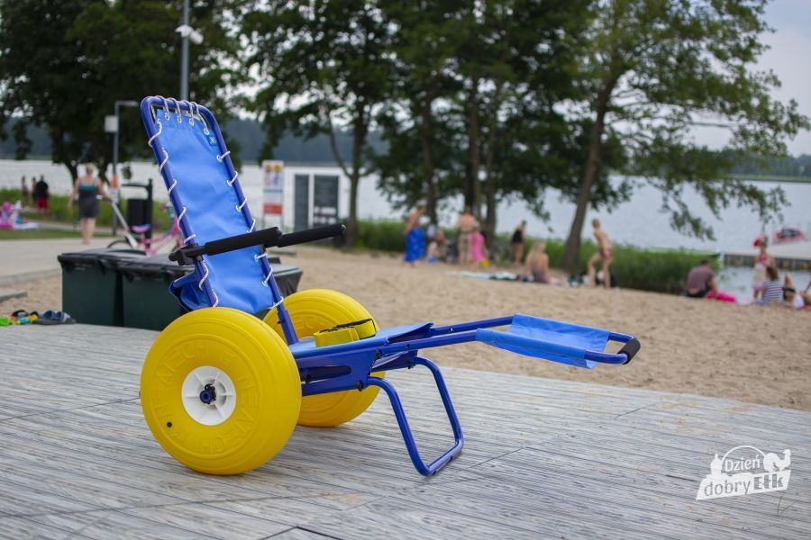 Jednocześnie MOSiR przypomina, że dostępny jest specjalistyczny wózek kąpielowy, który ułatwia transport po plaży oraz bezpośredni dostęp do wody osobom niepełnosprawnym. Zasady wypożyczenia na stronie http://mosir.elk.pl/plaza-miejska-ul-kolbego/